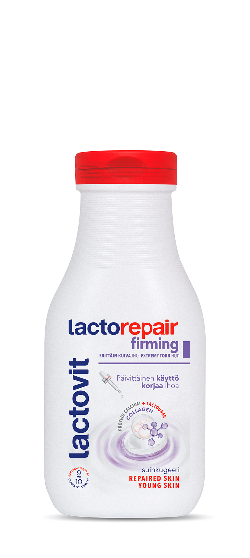 Tutustu erittäin kuivan ja karhean ihon päivittäiseen hoitoon Lactorepair Firming -suihkugeelillä. Maitohappoa, puhdasta ureaa ja kollageenia sisältävä yhdistelmä, joka elvyttää ja kiinteyttää ihoa stimuloiden sen oman kollageenin synteesiä ja parantaen ihon sävyä ja kimmoisuutta ensimmäisestä käyttökerrasta lähtien. Erittäin kuivalle ja karhealle iholle. Elpynyt iho on nuorekkaan ihon salaisuus.